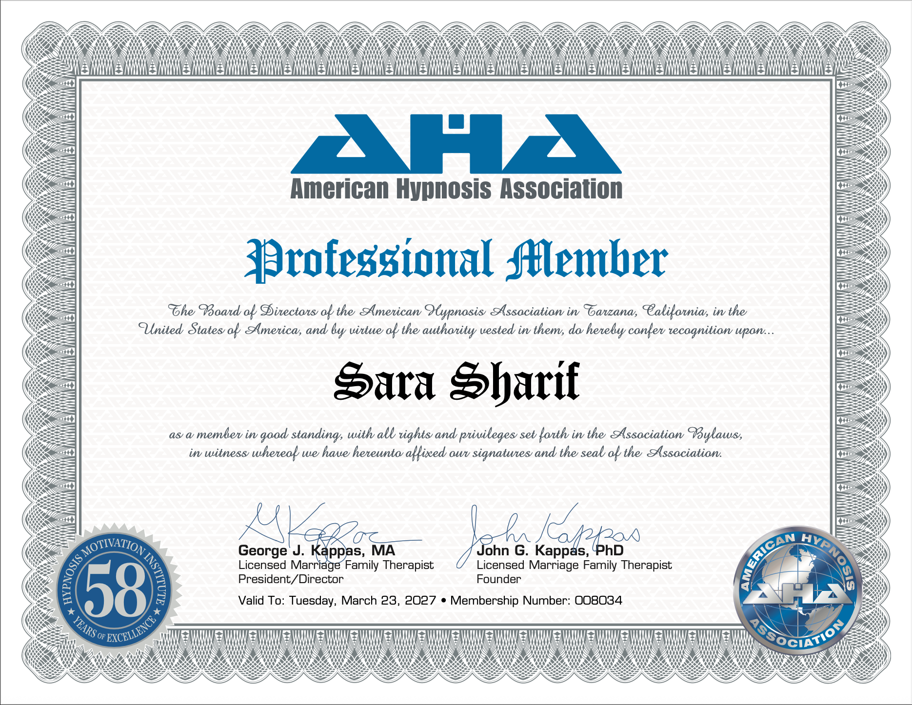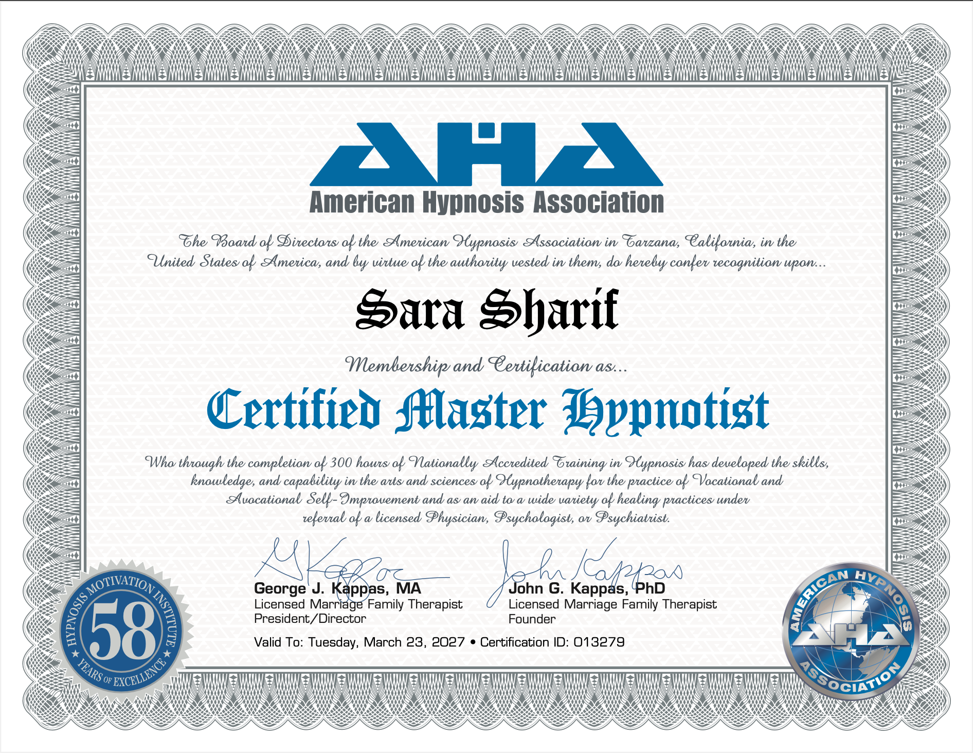 Sara is a clinical hypnotherapy practitioner devoted to helping individuals reconnect with their hearts, restore inner safety, and reclaim a sense of purpose during times of transition. She is a graduate of the accredited Hypnosis Motivation Institute and is certified by the American Hypnosis Association.